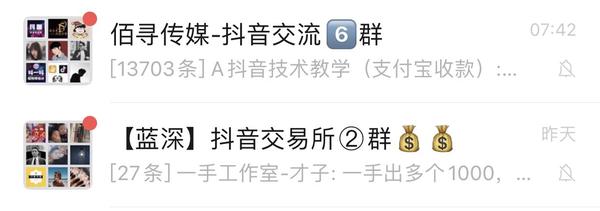 去年初抖音千粉号火爆时,我们从起号工作室收号,加价卖给个人,一天轻松100多个号,最重要的是,根本不需要到处推广,微信群里收的号,微信群里直接就出了。