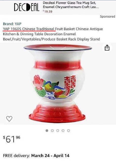 前一阵子有个很火的新闻,国内一二十块的痰盂,老外用来当果盘,在亚马逊上卖五六十美金,卖一个就挣好几百,真好赚啊!