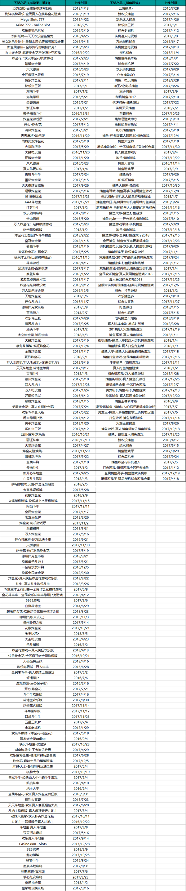 其中炸金花占了56款,牛牛有27款,德州游戏有15款,另外公告中提及的老虎机、百家乐、赢三张等带有博彩类性质的游戏也在本次的下架名单之中。