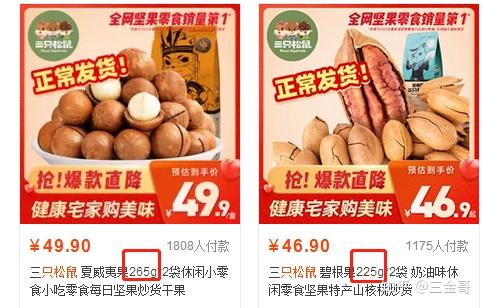 例如三只松鼠的含量为什么总是稀奇古怪,而不是标准化的500g?1000g?