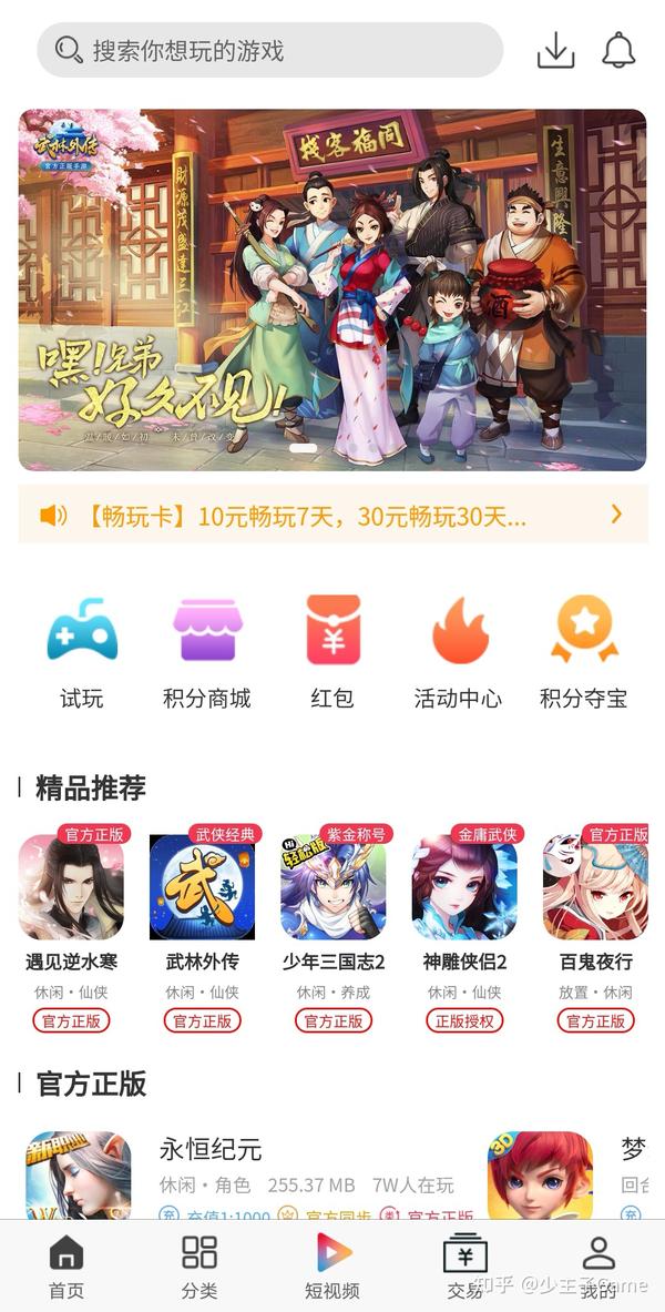 少主子正在运营的这个游戏联运平台,实际上也是一个游戏盒子app的形式,虽然在这款app里也有试玩拿红包的板块,包括积分商城、积分夺宝,还有畅玩卡,但实事求是地讲,这些也都只能赚些零花钱,而且我们设计这些板块的目的并不是为了让大家“赚钱”,而是为了让大家“花钱”。