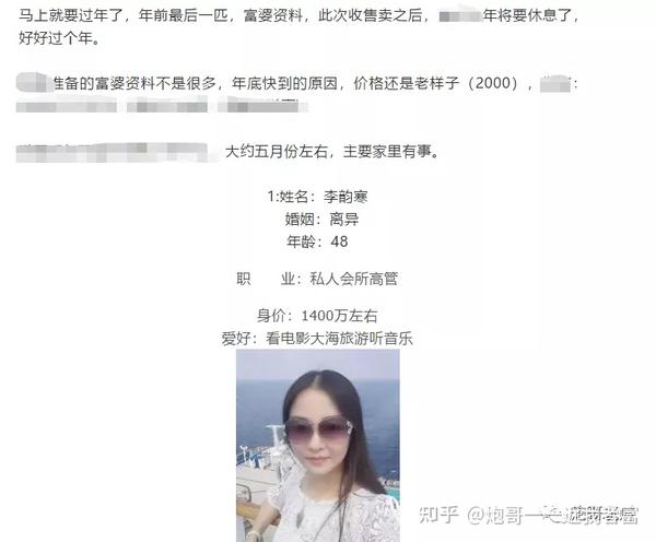 这篇文章大致说的一些富婆资料,有照片有基本简介,有的资料已经出售,有的富婆比较好色,(没截图的地方后面还有大概五六位富婆姐姐),这他妈也太真实,炮哥我都想交2000块试试看。