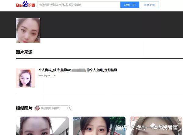 噢~通过百度识图我们知道了,原来这个富婆的照片是在世纪佳缘随意偷别人的,其本来人应该不知道照片被盗用,而且还成了富婆吧。