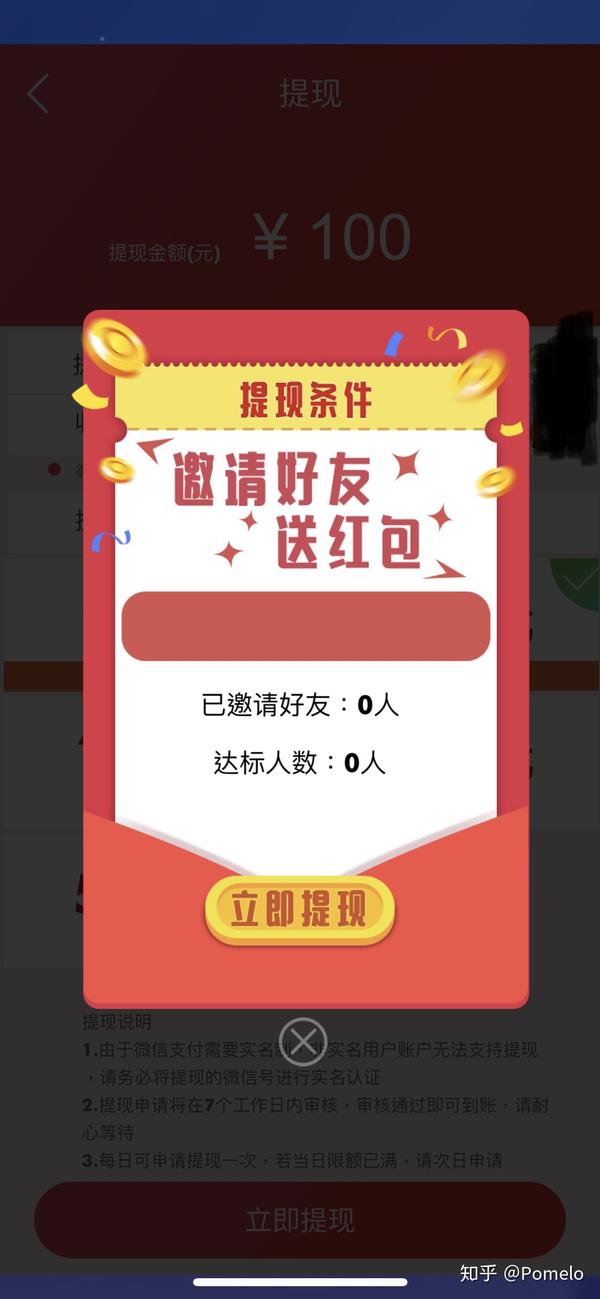 刚开始玩一局几块几块的涨,很快就到五六十了,后来几毛几毛的涨,但是到了80块就开始一分一分的涨,这个游戏目的就是为了让你看它的广告,还有很多小伙伴反应快到100了,97就开始卡着不动了!这也就算了,好不容易玩到100,结果还要你邀请好友才能提现,邀请了也不能提现,要好友做任务,至于后续。