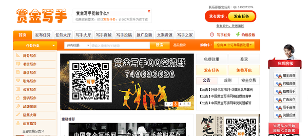 中国赏金写手网,可以看下,经常会发布招聘携手写文任务,多mark几个网站,多做多赚。