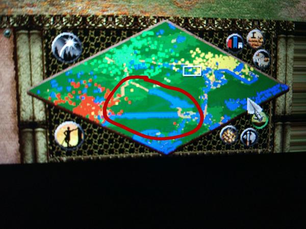 于是 ,在一次1V3的游戏中,我用骑兵把敌人城里的部队吸引走后,rush了一批农民进到敌家,而这个AI的城市就是紧挨着这个池塘建的。